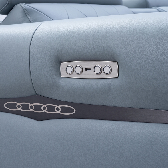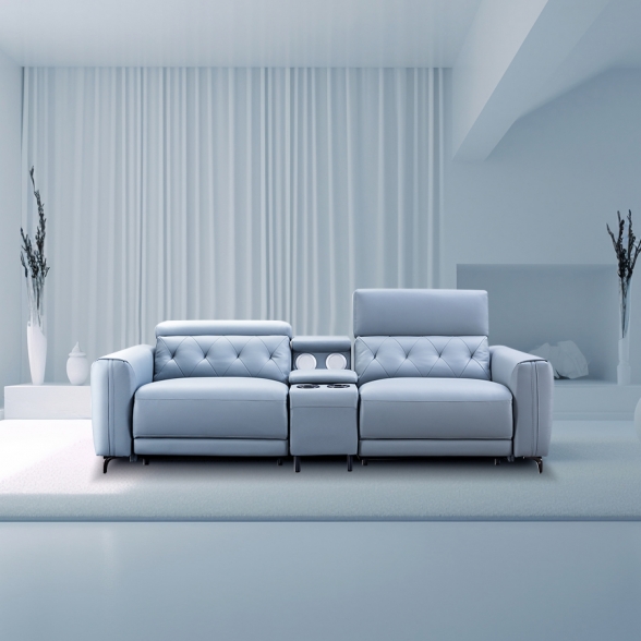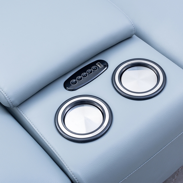 Alex Sofa充滿現代舒適感,非常適合影院室或舒適的休息室。享受全新的重磅產品,配有方便的飲料杯架、電影零食儲存空間、USB 充電孔、藍芽喇叭音樂無限暢聽,專為喜歡在沙發上度過時光的休閒朋友們而設計。
