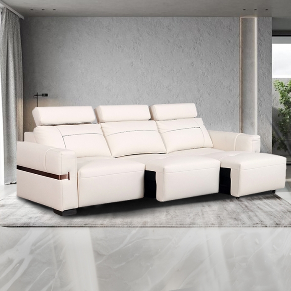 Carlo電動沙發使用時尚簡約的線條搭配十足的厚實感,細節的精湛工藝,穩重大氣中又增添華麗質感。拉伸式電動坐墊設計,或躺或坐,完美滿足各種空間與生活需求。