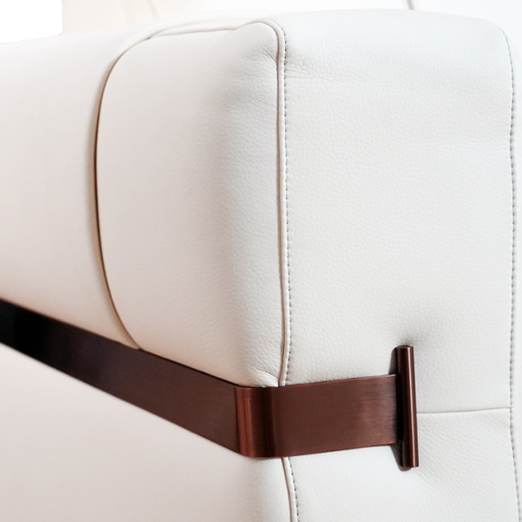 扶手中段採用紅銅金屬飾條,新穎俐落的微反射線條,搭配多層次反摺車線,時尚設計與精湛工藝,展現個性品味,帶出輕奢高雅的氛圍。