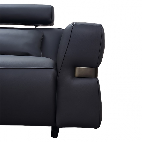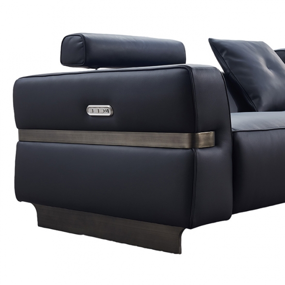 扶手側邊以一體成型金屬碳素鋼飾條設計,讓整體外觀不沉悶,流露出其高端輕奢感。