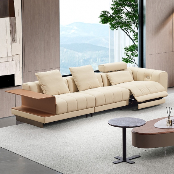 配有一鍵調整傾仰角度,讓舒適度達到極致,搭配高承重力的碳素鋼電動支架,開合順滑,超靜音且不易生鏽,高耐用性和安全性。扶手側設有USB插口設計,隨插即用,即時充電。