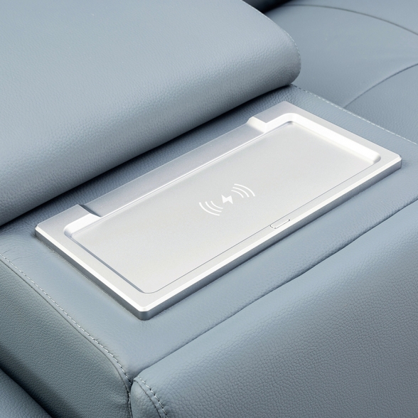 配有一鍵調整傾仰角度,讓舒適度達到極致,搭配高承重力的碳素鋼電動支架,開合順滑,超靜音且不易生鏽,保證耐用性和安全性。扶手側設有USB雙插口設計,隨插即用,即時充電。同時也提供無線充電盤設計操作簡單,適合所有年齡層,支援各種3C產品,輕鬆享受現代科技帶來的便捷體驗。內建隱藏式收納箱,有效解決客廳收納難題,保持整潔美觀。