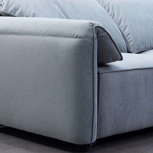 採慵懶的視覺,獨特的造型像極大象耳朵,寬大的頭枕,給人一種大氣優雅的感覺,翻摺扶手設計,蓬鬆柔軟靈活舒適,可躺可枕,不僅增強了沙發的舒適性和支撐性,適合長時間久臥,更成為現代家居備受喜愛的沙發款式。