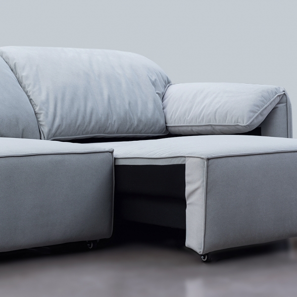 5D高彈力回彈海綿,帶來卓越的座感體驗,優異的彈性和持久的回彈力,無論長時間坐臥,都能保持沙發的舒適與支撐性,更貼合身體曲線,提供全方位的支撐,讓每次坐下或躺下都成為極致的享受。