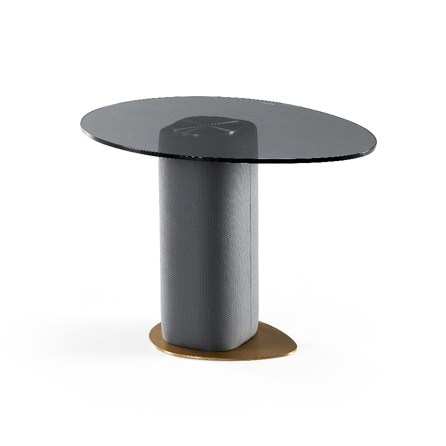採用灰色透明玻璃檯面,並配有金屬金色塗漆鋼底座,