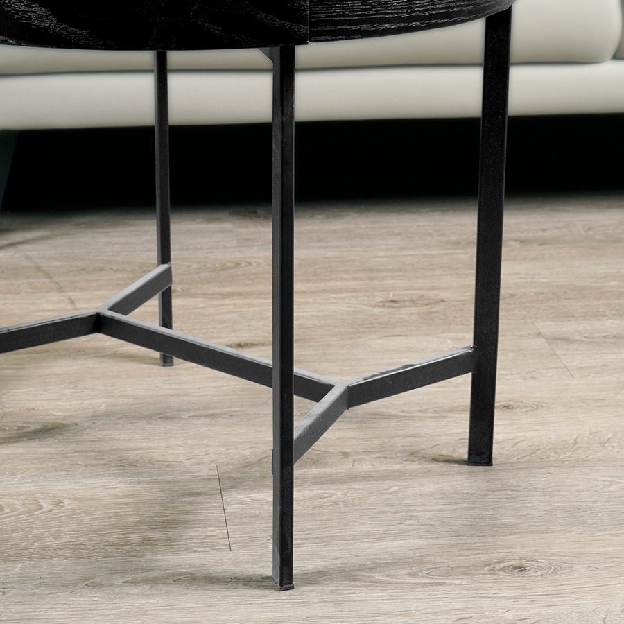 深色木質臥室抽屜櫃,高底座由金屬管製成,由兩個