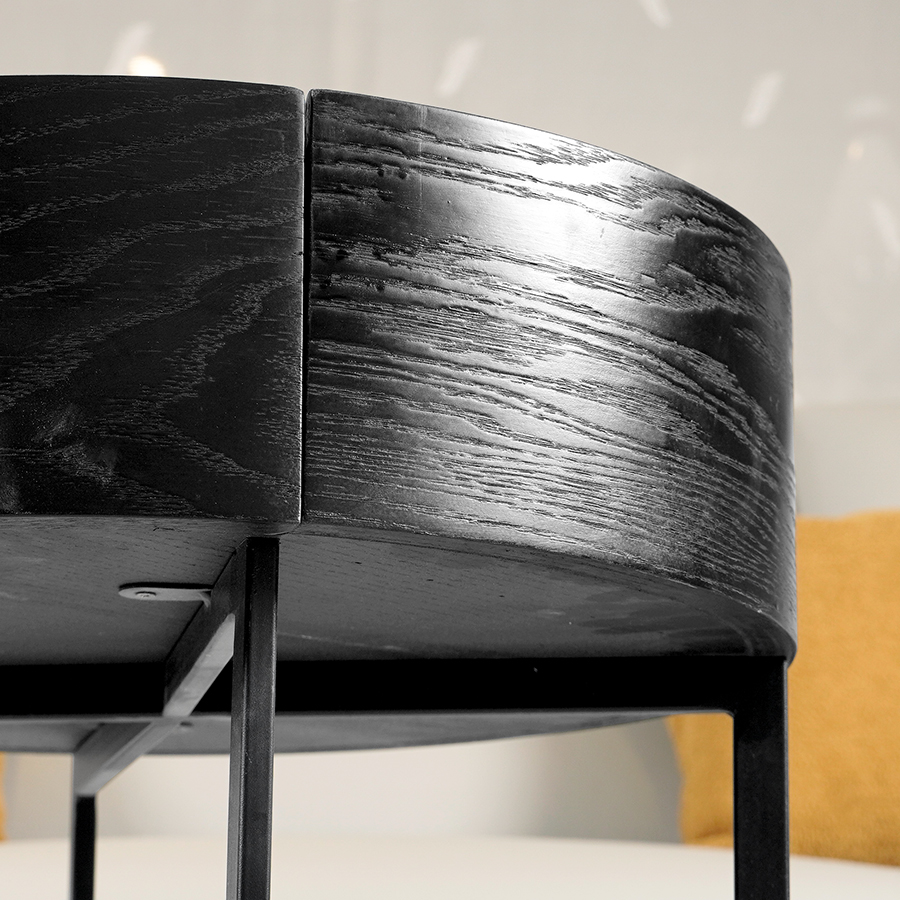 重疊和垂直的部分組成,使這款床頭櫃看起來纖細而