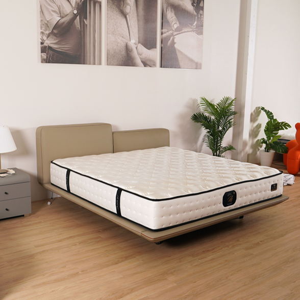 漂浮感的床架設計,搭配頂級牛皮的觸感,