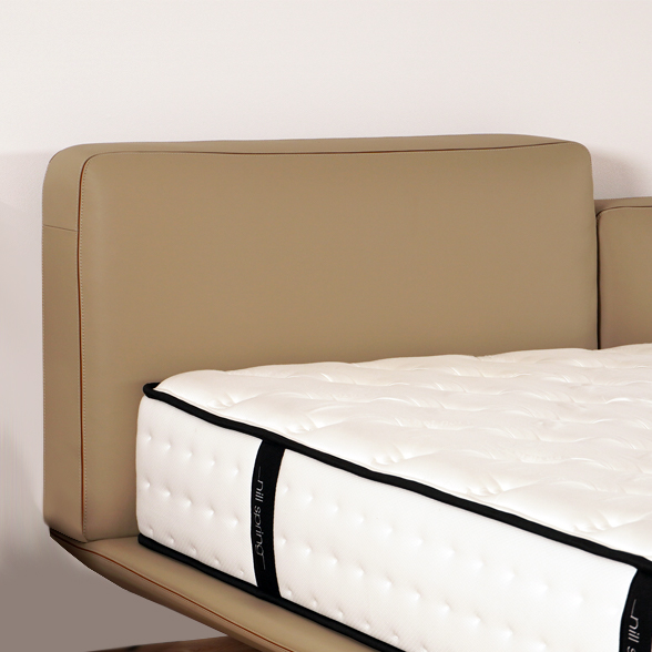 獨特的高底床頭及漂浮感的床架設計,搭配頂級牛皮的觸感