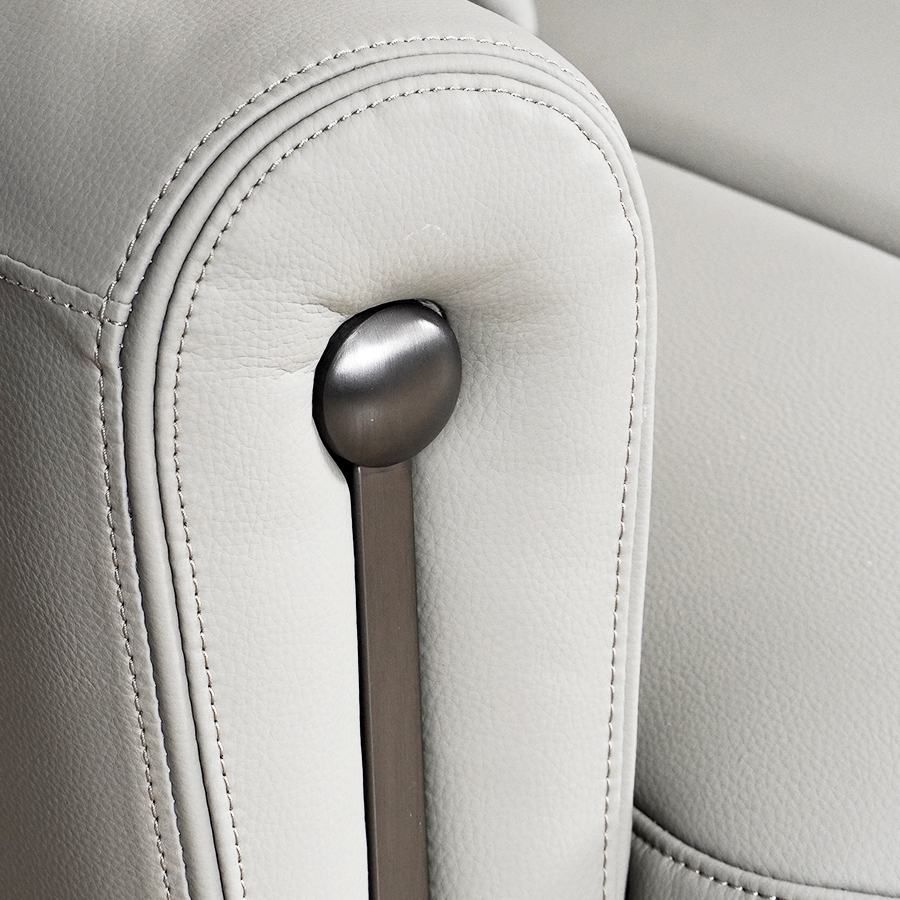 扶手處以圓潤造型設計,配有金屬元素豐富視覺延伸感,