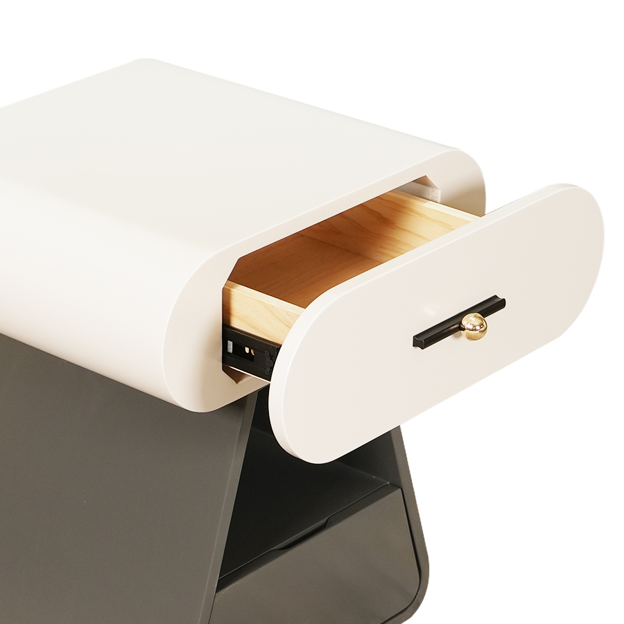 Angra床頭櫃外觀優雅,適用於臥室、客廳,中性色易於搭配風格,擁有抽屜式和桌面式,高度適中,承載強,清潔方便,手把簡約,節省空間,抽屜耐用光滑,方便日常物品收納。