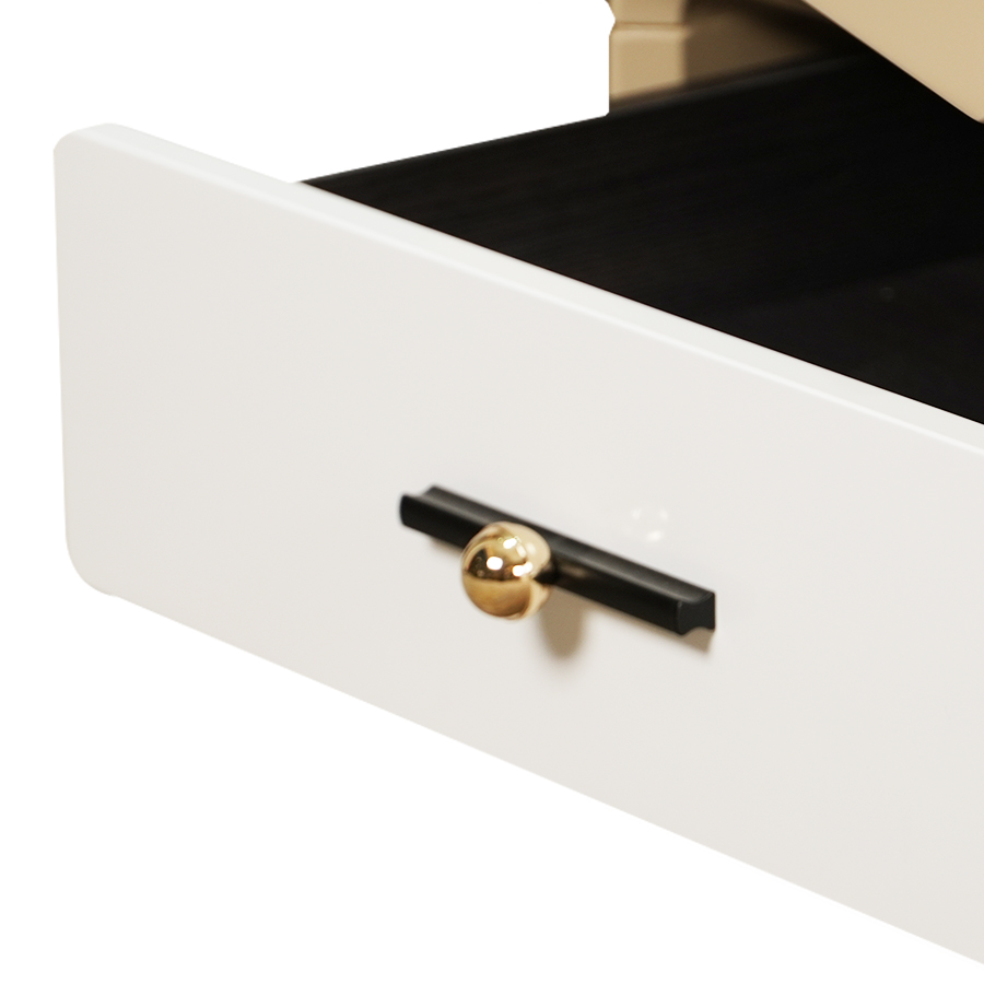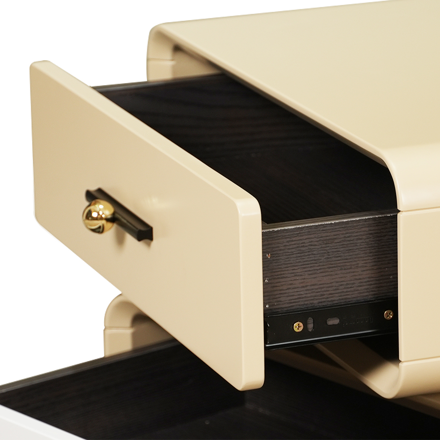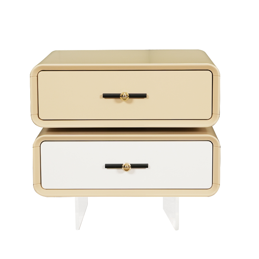 Mina 床頭櫃,奶油風格帶有實用的二抽設計收納,手把處點綴更加奢華美觀。