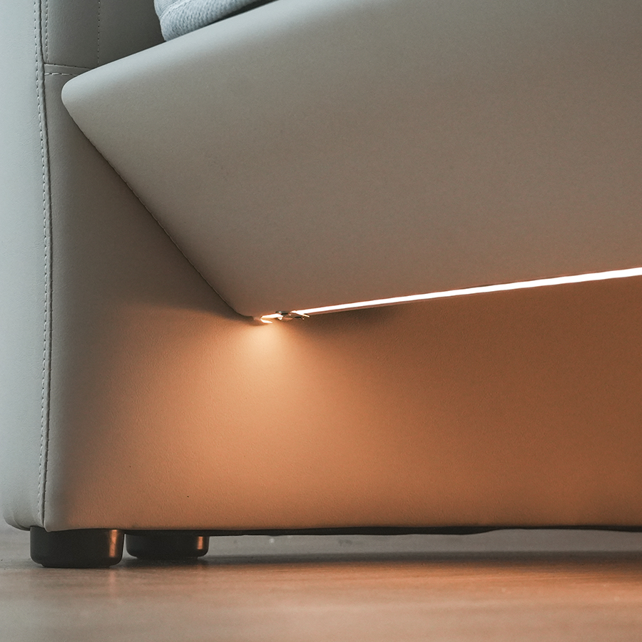 夜晚起身不再摸黑找燈!Morrie 床架的智能感應照明設計,隨著你的腳步自動點亮,讓你輕鬆移動,不打擾睡眠中的舒適氛圍。貼心又方便,為你的夜晚增添更多溫暖與科技感!