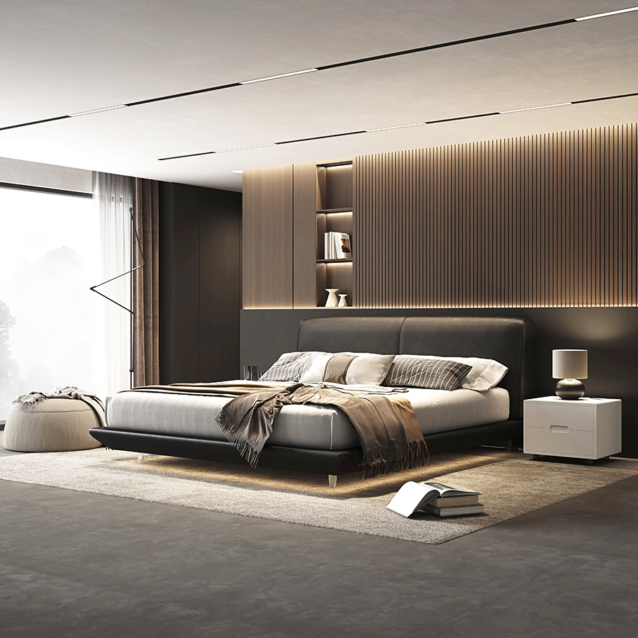 現代設計與智能便利,內建感應燈設計,隨著你的移動自動感應發光,不僅實用,還帶來舒適的夜間體驗。柔和的光影與細緻的床架設計相輔相成,讓每處細節充滿智能化的貼心體驗,完美詮釋義式風格的優雅與現代生活的便利。