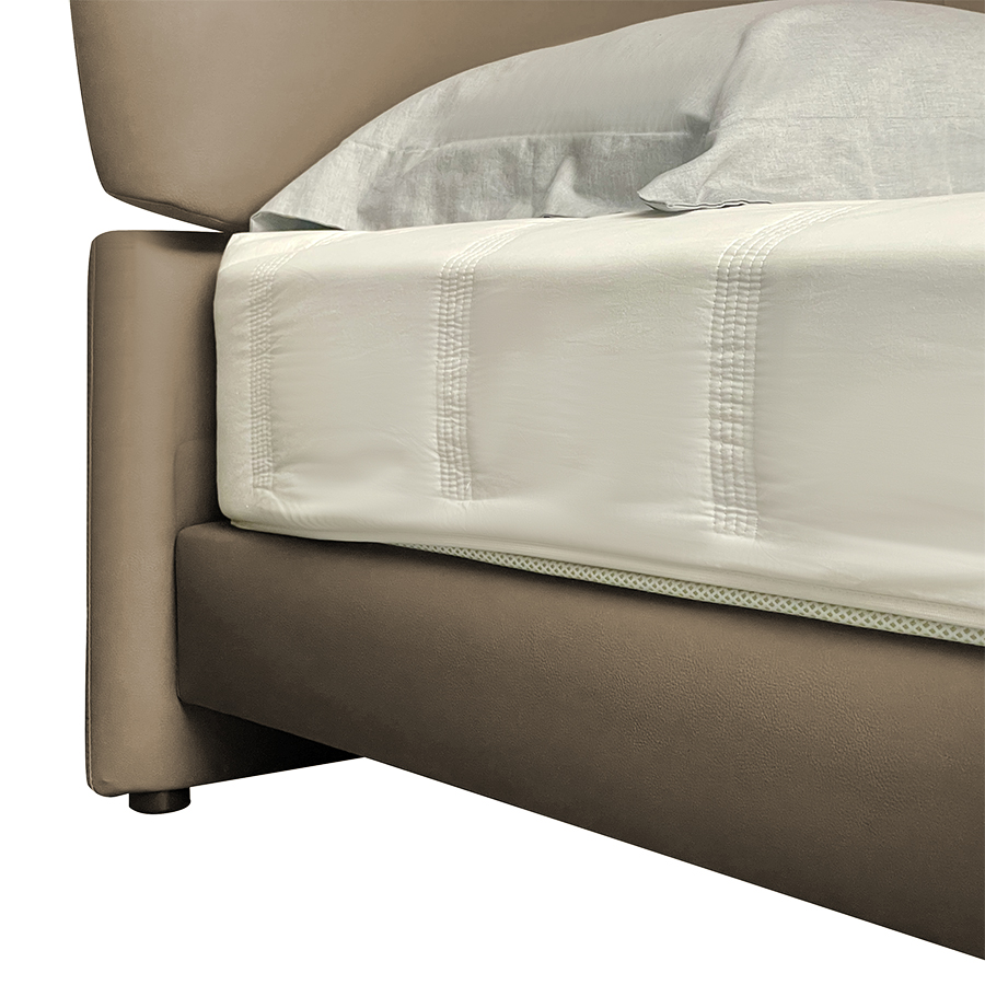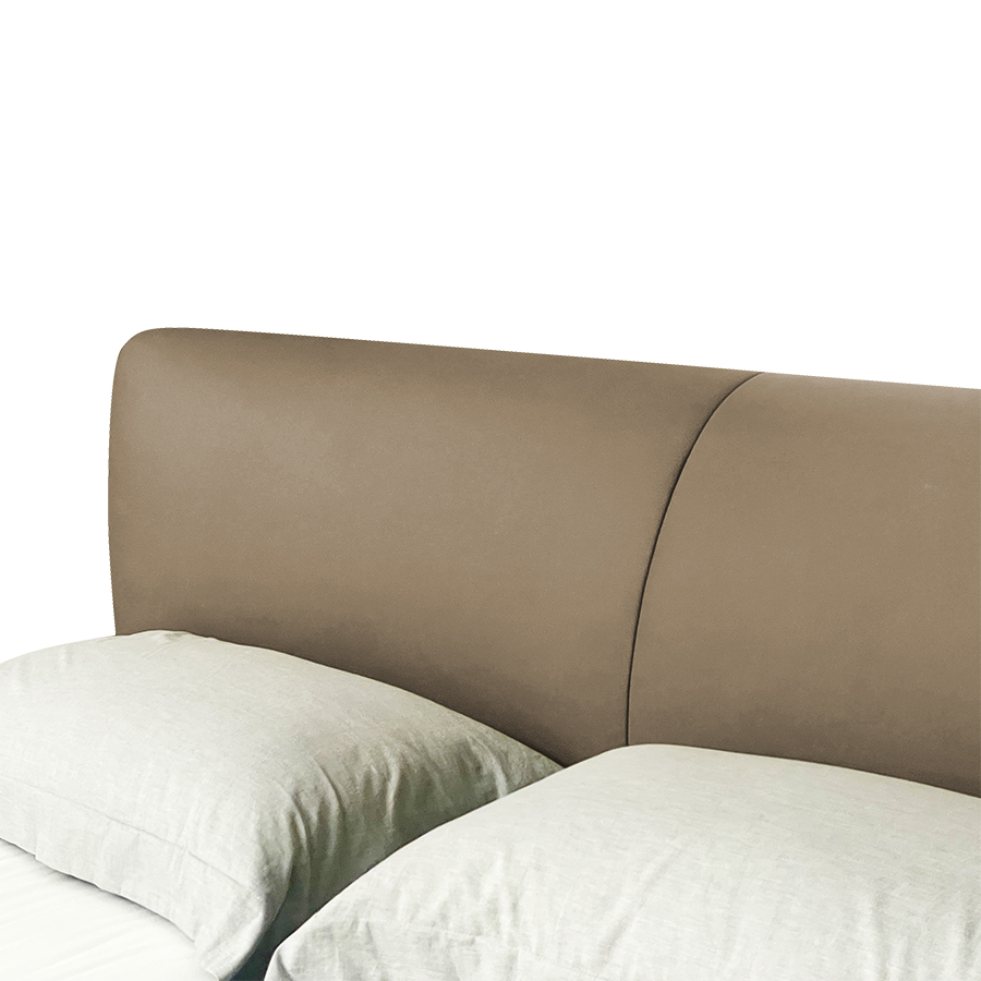 以簡約線型為靈感,床頭的分段設計結合圓弧造型,體現簡約而不失高級感的義大利美學。