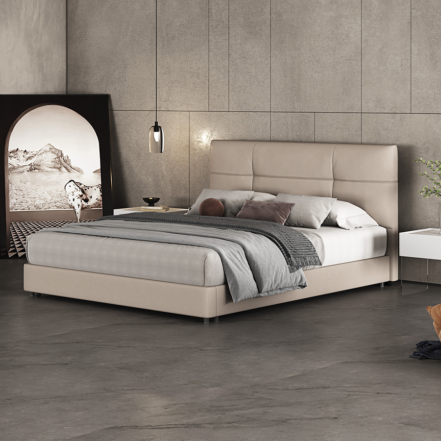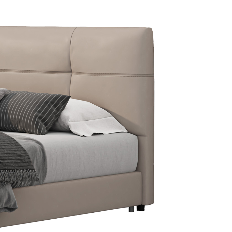 矩形拼接的床頭設計結合了幾何元素與精緻的車縫線, 既符合現代極簡風格,又不失設計亮點,適合各種室內裝潢風格。厚實的床頭軟墊更添舒適感,營造出獨特的現代氣質。