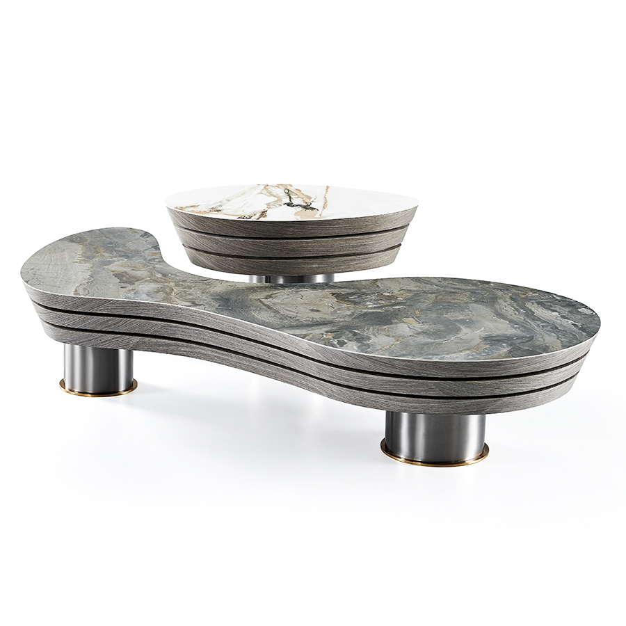 黑色岩板紋與底座展現強烈的視覺吸引力,