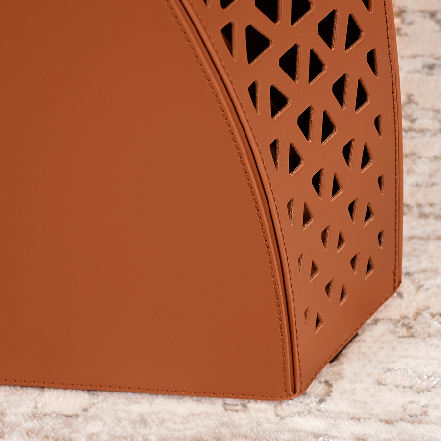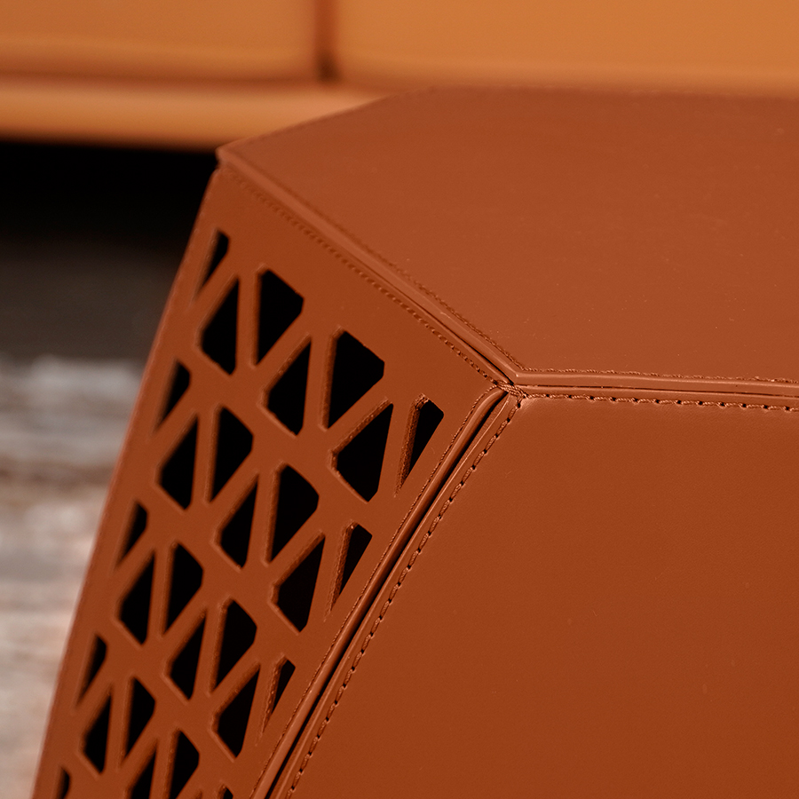 這款邊桌採用精巧的手工製作,完全由真皮製成,採用獨特的六角形設計,視覺上吸睛又時尚。