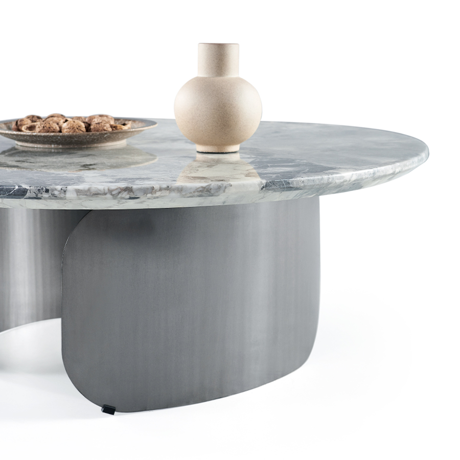 擁有自然的灰色色調桌面,綴以流暢的輪廓,沒有尖銳的線條,使其能夠融入各種空間,可搭配同款小茶几。